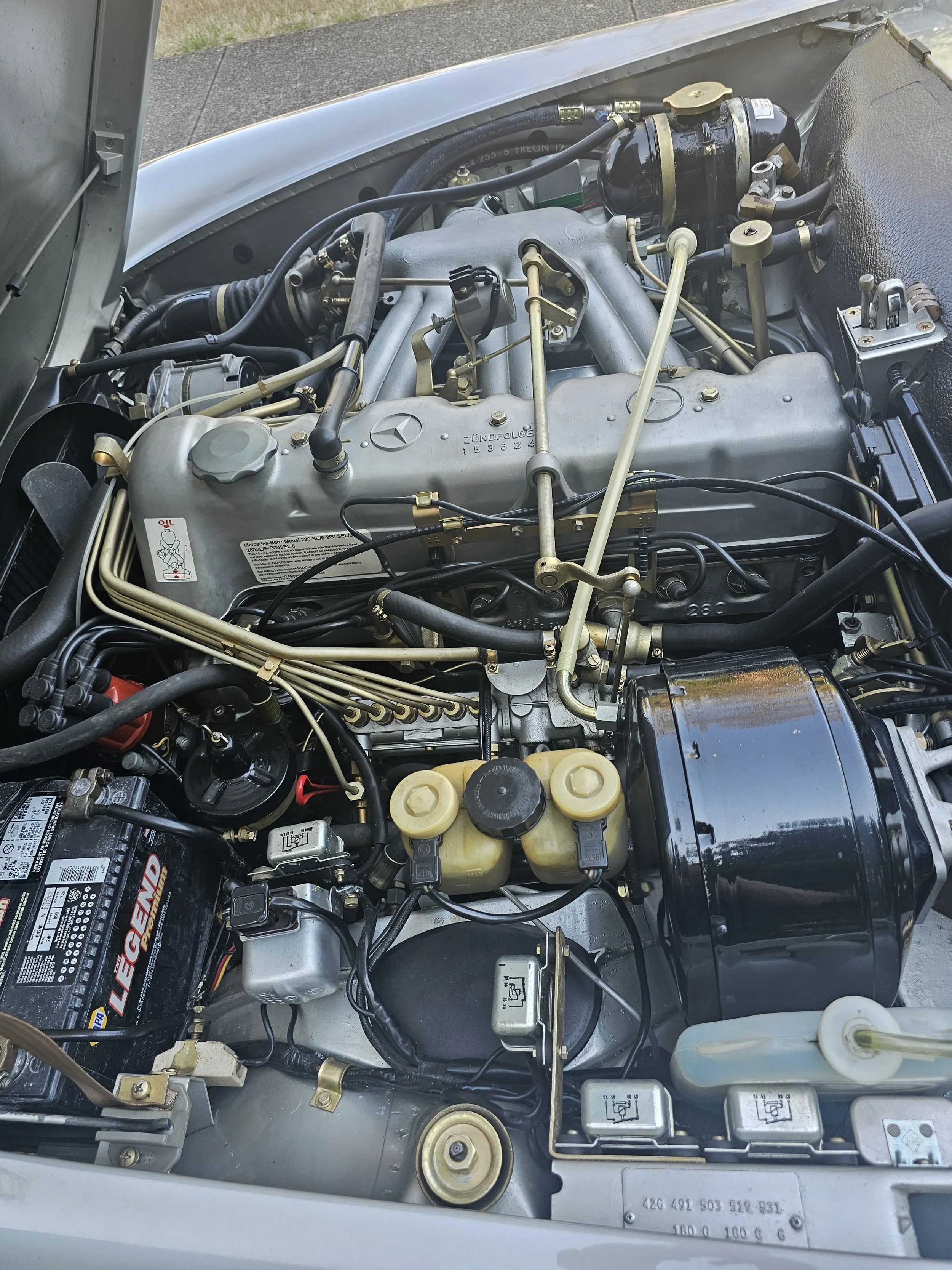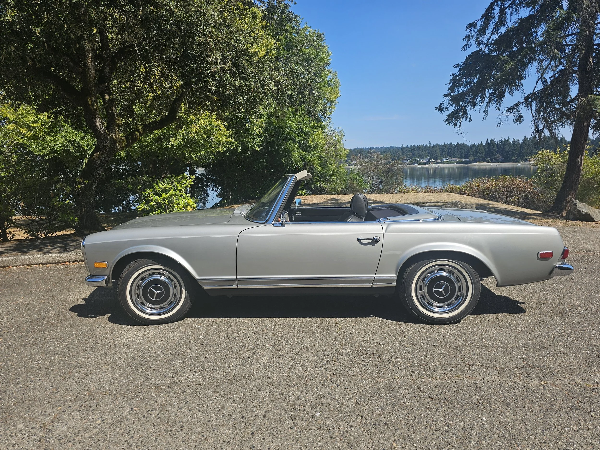 This is a spectacular two – owner example of the highly coveted 280 SL – the final pagoda produced by Stuttgart. This example checks all the boxes, silver/black, Factory (fully functional) A/C, A/T, factory books, tools and jack.