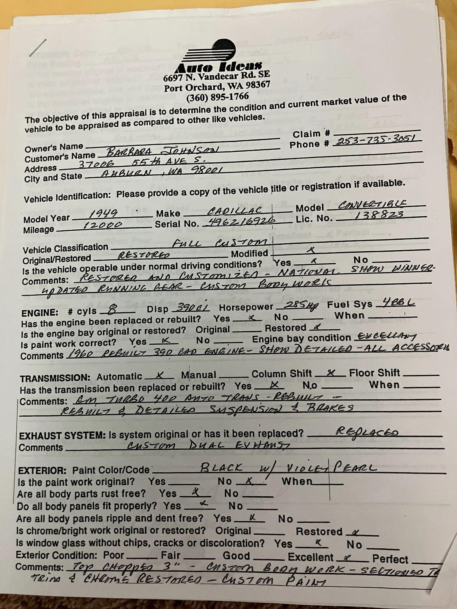 Exterior Color: Glossy Black and Velvet Pearl (Bryer's Custom Paint Shop--Auburn, WA)