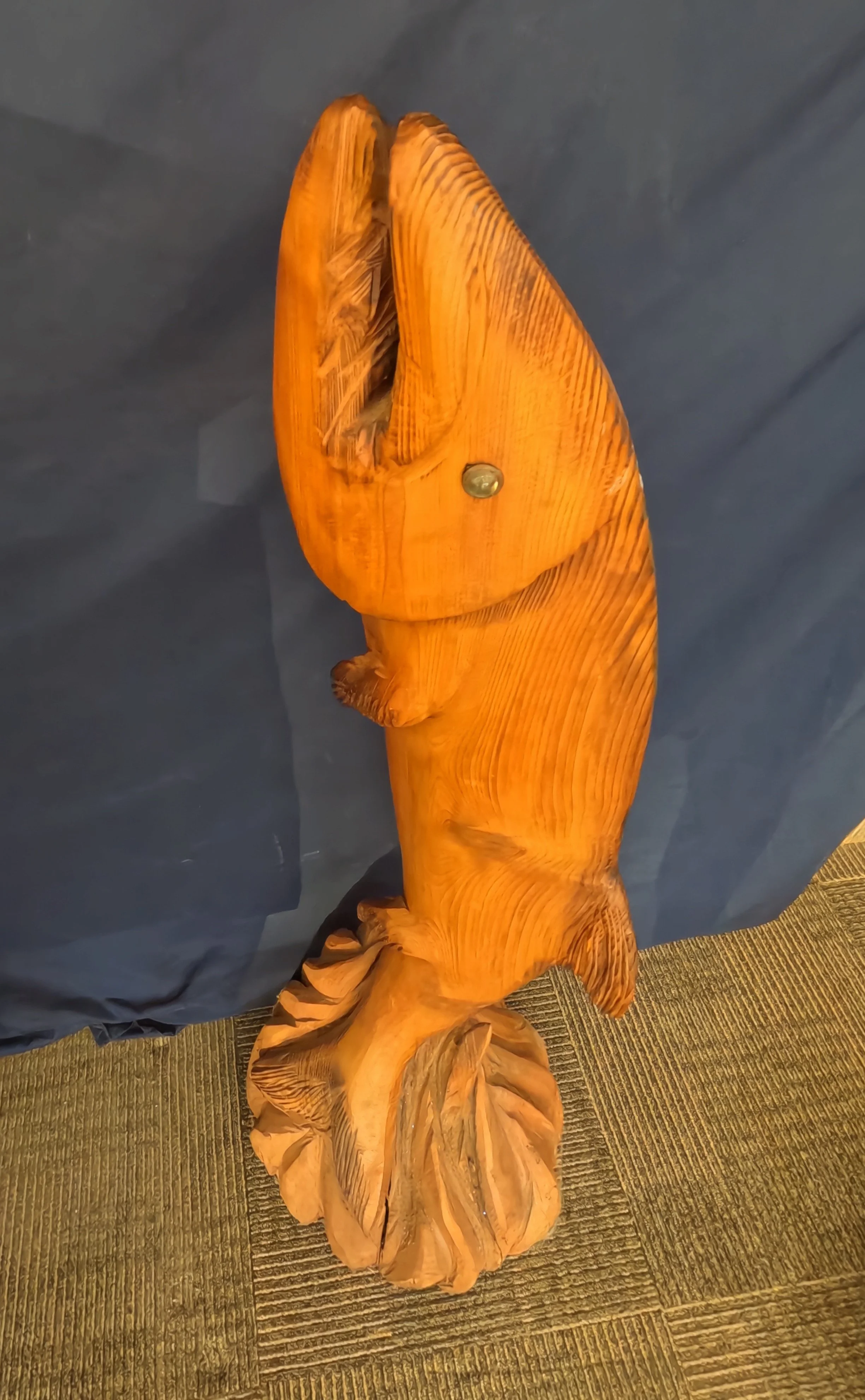 Unexpected! This large status of a fish has been carved from wood and stands approximately three feet tall. Looking for a special person who loves to fish.